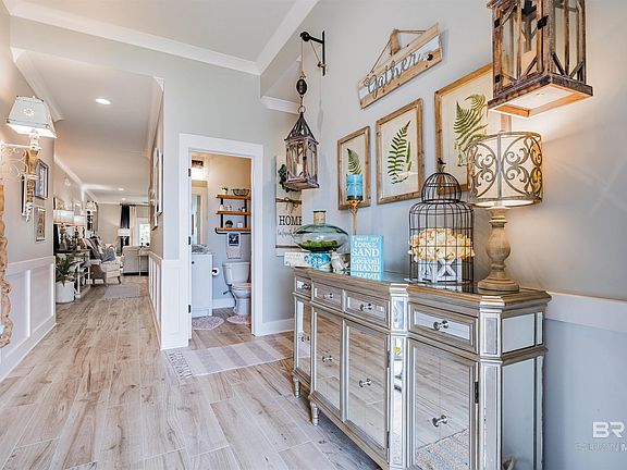 Community Pool Coming Soon!!! $10,000 PRICE REDUCTION!!!! ON THE ISLAND and in the Gulf Shores City School District. Beautiful, Better Than New 3 bedroom 2.5 bath Custom Built Gold Fortified home with High Impact Windows and Doors and a Metal Roof. Perfect location in the highly desirable neighborhood The Colony at Fort Morgan. Built in 2022, this lovely home has an Open Floor Plan with 9' and 10' Ceilings, Custom Plantation Shutters, Wide Plank Ceramic Wood-look Tile in all areas except guest bedrooms. Gorgeous finishes! Crown Molding and Custom Trim Work. Hand-made mudroom bench off of the garage going into the Spacious laundry room outfitted with cabinets and sink. The Modern Kitchen is complete with a Large Granite topped Island, Gas Range, Dark Stainless Appliances, Soft Close Cabinets and Doors, as well as a Nice Size Pantry with Wooden Shelves.The Spacious Primary Bedroom located just off the living area comes with ensuite with Large Tile Shower and Soaking Tub. You'll love the Custom Primary Closet again with Wooden Shelves! NO Wire Closet Shelving in this home! The guest bedrooms are located at the front of the home with both having access to a full bathroom. The half bath is also conveniently located off the front hall. There is a Covered Back Patio that can be accessed from the living room where you can listen to the blue birds and watch Beautiful Sunsets in the Private Fenced Back Yard perfect for your furry friends or ready to add a pool. The Colony at Fort Morgan is Super Convenient to shopping, restaurants, and central Gulf Shores yet just far enough away from tourist traffic. It is only 4.5 miles to Gulf Shores Public Beach and less than 1 mile to Little Lagoon and Moe's Landing Park and Boat Launches. The Bike Trail at the neighborhood entrance will take you all the way to the beach and through the entire Gulf State Park. Island Living at it's Finest! Call me or your favorite agent to set up a showing today! Buyer to verify all information during du