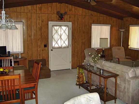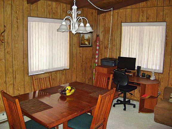 Great Year-Around or Vacation Home offering three bedrooms; a den with an exterior door and small deck; one Full Bath and Two 3/4 Baths; Ceramic Tile in Kitchen; Hall and Baths; Dual Pane Windows; Six Inch Walls ; Wall and Floor Electric Heaters; Wood-Burning Zero-Clearance Fireplace; Furnished with exception of personal and/or marked pieces and by Bill of Sale for no Dollars outside of escrow; 10 X 12 Storage Shed w/electricity; Covered Front Deck; Open Side Deck with Remote Control Retractable Awning; On a solid Foundation; Drain-Down System. All of this comes on a WELL TREED lot with room to build a Garage. Ready to Move in!