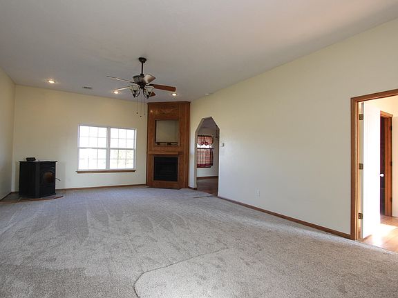 Just on the edge of town is this 3 or 4 bedroom 2 bath home. 4 th room has window and closet but could be used for office or formal dining. Recent upgrades include new paint, all new carpet and new furnace. Spacious flowing floorplan and pellet stove. All sitting on over 3 acres.