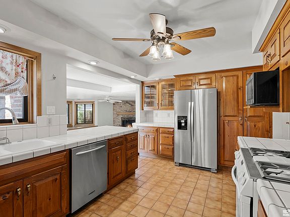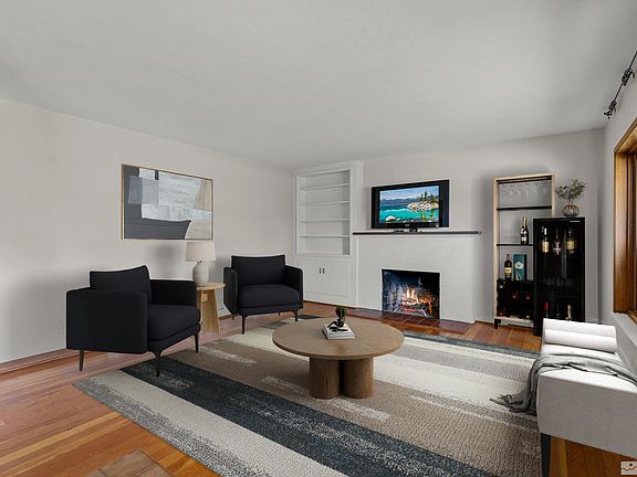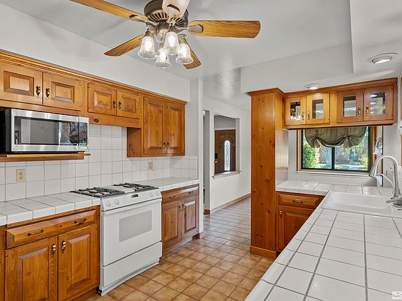 This beautiful home in Old SW Reno is located on a gorgeous, quiet, tree lined street. This truly is a home that you must enter to appreciate. It has beautiful curb appeal with a Tahoe feeling of warmth and charm. Honey maple cabinetry, some with glass fronts, stainless appliances in kitchen, including dual heating cooktop and oven. Relax in the luxurious garden tub/shower combo, done beautifully in marble., Gorgeous oak wood encased windows throughout, ample storage and laundry on main level and too much more to mention. Partial Blinds/shades etc. are as is. All of the bedrooms are quite large with 2 on main floor and 1 on upper level. Separate living room with a wood burning fireplace, family room with a wood burning fireplace and dining room/breakfast nook. A must see home. Roof was replaced May 2024 along with fresh paint inside. Some photos have been virtually staged. BTV all info.