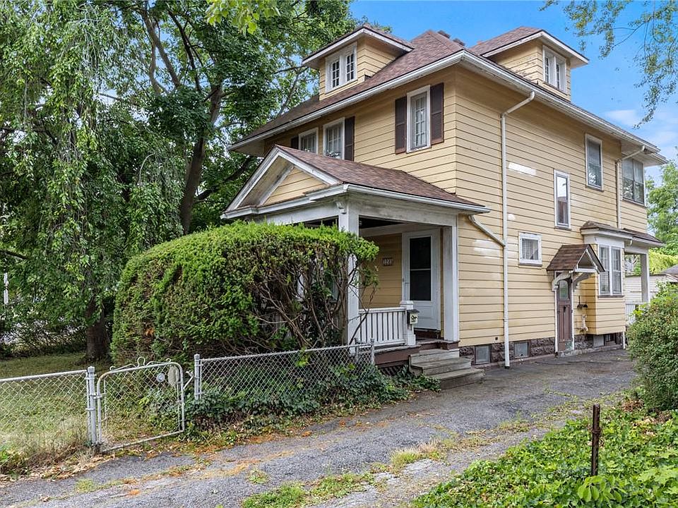 Another Rockin' Rochester property. Large three bedroom home in the 19th ward is ready for the next owner. Tall ceilings, large pantry, enclosed porch of one of the bedrooms, and the wood trim throughout make this home a true gem. Gas fireplace insert has been used by owners in past but conveyed in AS-IS condition. Vacant and easy to show. Across the street from Genesee Valley Park and close to the U of R. Delayed Negotiations until Monday 8/8 at noon.