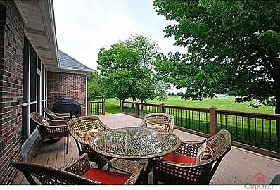 Another day in paradise! Spectacular brick ranch with basement in beautiful Heritage Trails. Open floor plan with kitchen, Great Room and eating areas all open. Gourmet kitchen with solid surface countertops, cherry cabinets & stainless appliances. Den/office with beautiful built-in bookshelves. Large multi-purpose over garage can be used as Bonus Rm/Bedroom. Large finished basement is a great place for the man cave or kids. Screened porch and huge deck.