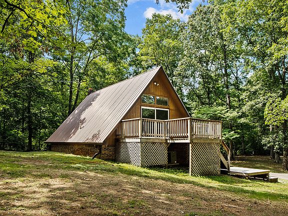 BACK ACTIVE at no fault to the sellers! Your very own private retreat! This adorable 3 bedroom, 2 bath A-frame home is nestled on a very secluded 5.1 acre wooded tract. Beautiful timber throughout the property. Open-concept living upstairs. Large 2nd story deck for entertaining. Paved drive leading you up to the house. Lots of road frontage. Freshly painted, new upstairs flooring, and fixtures throughout. Metal roof and brick construction. Quiet yet only minutes from the interstate or downtown Dickson! Easy commute to Nashville and surrounding areas. Move-in ready! A yard perfect for a fire pit and hammocks. So many possibilities with this property! Home is on public water but there is a well on the property, also!