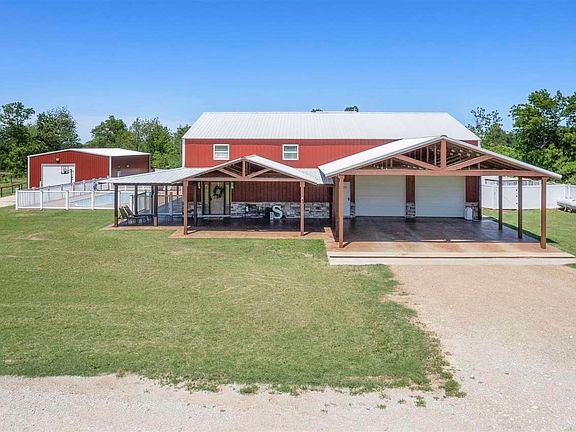 This custom ACREAGE market value appraisal (in file/provided) is $436,000 w/cost approach $450,000 20+ ACRES w/paved access only 7.5 miles to I35 conveniently located to Perry, OKC, Enid, Wichita, 412 turnpike to Tulsa. 2400 sq ft custom home providing open concept downstairs, 2 living areas, 3BDs & 2 full baths. 1200 sq ft garage w/800 sq ft carport AND 1500 sq ft shop w/guest living quarters. Luxury vinyl floors, 1 3/4" granite, vinyl fencing, corrals, POOL are a few amenities. This property is a MUST see. Call today!