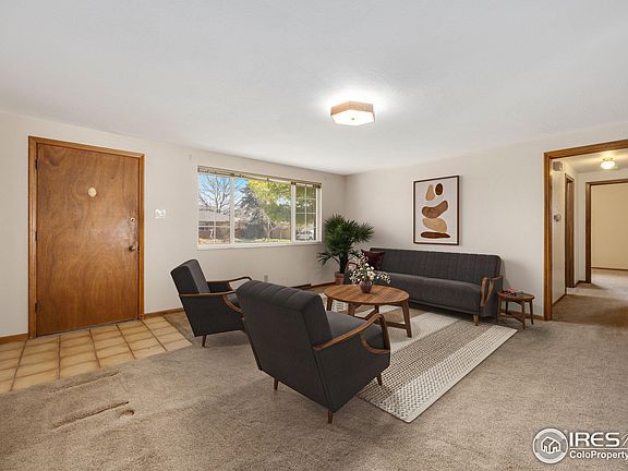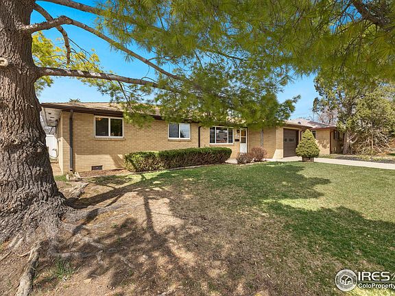 A timeless mid-century brick ranch home located in the heart of Longmont just a few blocks from Loomiller Park, with nearby shopping and restaurants. New windows fill the flexible, open layout with natural light. Entertain guests in the large living room overlooking the mature trees and beautiful front lawn. A spacious kitchen features wood laminate flooring that is easy to maintain, a breakfast nook, and plenty of cabinet space. Open wood shelving separates the eat-in kitchen from the formal dining area, a charming original feature that adds to the home's character. A pot belly fireplace, brick wall, and floating shelves create a cozy retro atmosphere in the family room. The primary bedroom has an attached bathroom with a shower and access to the laundry room with washer and dryer included. 3 additional bedrooms can serve as guest rooms, a home office, or a sunroom. The expansive vinyl-fenced backyard is perfect for outdoor dining or relaxing. New hot water heater. Attached 1-car garage with built-in storage. Convenient location with easy access to Boulder and Loveland. No HOA!