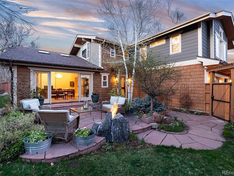 Contemporary Farmhouse home + guest house on a beautiful oversized private lot in an ideal north Boulder location. Remodeled with thoughtful attention to details and functionality, spaces are filled with abundant natural light and integrate seamlessly between indoor and outdoor living. Main house offers 4 bedrooms + 4 baths, with options for main floor primary suite with private patio, or upper level suite with phenomenal views. True highlight of this home is its expansive open entertainment space with two story living room, wine cellar and dining room with full wall of French doors leading you to a private patio oasis. Hub of the home--spacious remodeled chef's kitchen is designed with timeless materials, integrated high-end appliances, oversized island and access to another beautiful patio. Incredible contemporary design details blend effortlessly with farmhouse accents throughout the entire home. Private 2 bed + 1 bath Guest House offers endless possibilities for multigenerational living, Au pair quarters, or rental with established cash flow--fully licensed and incredibly rare to find in NoBo. Phenomenal Boulder location with short walk to Mt. Sanitas trails, next to multiple bike paths and quick access to downtown.