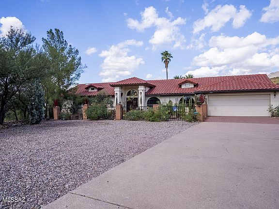 This beautiful gated 4 bedroom, 2 bath home sits on 2.25 acres and provides views and tranquility in Rio Rico. With a solar heated pool, 1 bed 1 bath guest casita, multiple fountains, an outdoor kitchen and a large Arizona Room, the home is an oasis in the desert. Surrounded by mature trees this property has provided a safe haven for many species of birds including hummingbirds. Close to Pendleton Drive so access is easy, yet far enough away to ensure privacy. Come view this very special place in Rio Rico and enjoy all that Santa Cruz County has to offer.