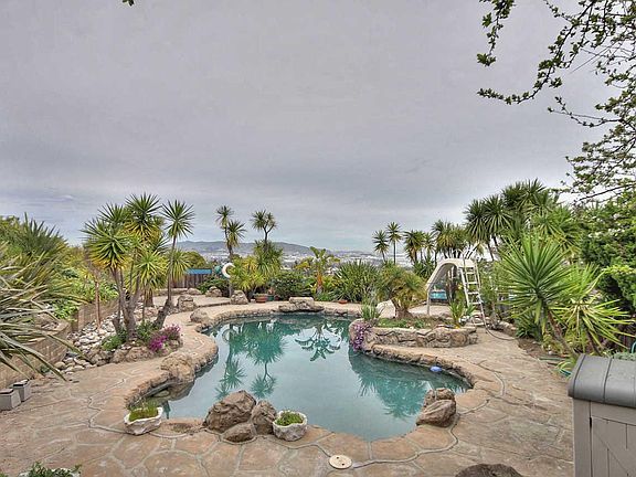 Spacious home with amazing views of the bay, bridge & airport. Large master bedroom on the main level with a den, formal dining kitchen with an eaten area and a large family room down stairs with the 4th bedroom and bath. Great pool area. Private gated home on a cul-de-sac in Mills Estates.