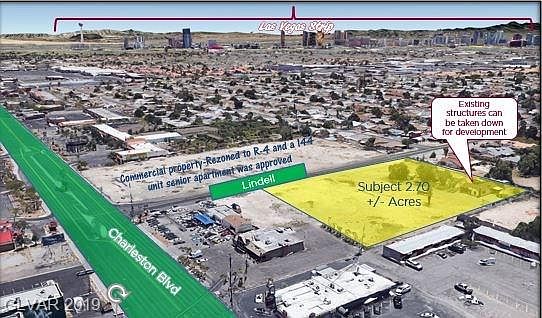 APN # 163-01-103-027/028 $650,000 per acre Las Vegas jurisdiction zoned RE-Residence Estates District-up to 2 du per acre Parcel across Lindell was approved for zone change to R-4 and a 144- unit senior apartment. Parcel is fenced. Paved roads. Water stubbed to parcel. Septic sewer.
