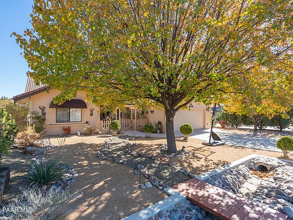 Beautiful home with numerous upgrades in Prescott Country Club overlooking the golf course! 2 bedrooms, 2 bathrooms, 2,012 square feet. Featured upgrades include: new drop in electric stove, microwave, dishwasher (2019), granite countertops in kitchen with under and above counter lighting. Quartz countertops in both bathrooms, recessed lighting and light up deco mirrors in vanity (master bathroom), new toilet in 2nd bathroom. New sinks, faucets, ceiling fans, light fixtures, outlets, light switches and cover plates. Beautiful tongue in groove wall treatments. Spot lighting added in master bedroom and living room. New interior paint (except laundry room). Epoxy floor in garage and new storage racks. New landscaping front and back, including a lovely front arbor with matching trash can