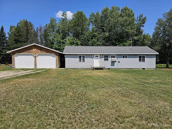 Newly remodeled Ranch style home situated on 12 acres near Thompson! This home has been gutted to the studs and rebuilt with so many updates including NEW electric, plumbing, septic, well, flooring, drywall, windows, roof, etc. Spacious layout featuring the largest bedroom on one side of the house, with open concept kitchen/living/dining areas, and 2 bedrooms and 1 bath on the other side of the home. The expansive laundry room doubles as a pantry with built in storage for canned goods and more! There is a water softener & tankless hot water heater. If you need workspace, the 2-car garage is heated and insulated with a work bench. Plus, there are 2 storage sheds, a Gazebo, and a chicken coop. With 12 acres of property there is so much room to explore through the trails, have gardens, or just simply enjoy nature and wildlife. Bon fire pit for summer nights and horseshoe pits for entertaining. Just a short distance to the ATV/Snowmobile trails, this location is a few miles from Lake Michigan, and close proximity to Manistique, Big Springs of Indian Lake, and so much more! There is siding for the garage that will be included in the sale as well as the propane tank. Kitchen appliances included.