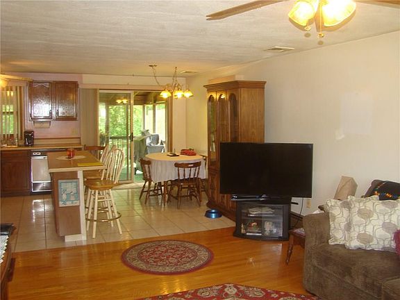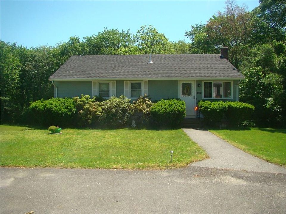 Nicely layed out ranch perfect for first floor living. Open floor plan with living room leading into eat in kitchen and dining area that welcomes you to a three season porch. Two good size bedrooms. First floor laundry. Extra finished living space located in the basement that has sliders that open to a patio. Huge backyard with just about an acre of land that abuts consevation wooded land. Two car attached garage and circular driveway. Seller will be putting in brand new septic system.