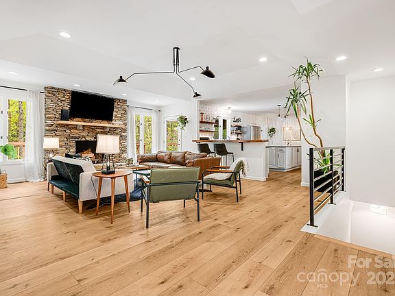 Welcome to your private sanctuary in the heart of Fairview, NC. Nestled on 5.5+ secluded acres, this beautifully updated home offers a rare combination of modern comfort, and natural beauty. Surrounded on three sides by pristine creeks—including scenic Cane Creek running through the backyard—this property is a true nature lover’s paradise. Though the home is permitted for a 2-bedroom septic system due to its unique setting among multiple waterways, it features five bonus/bedrooms and five full bathrooms, providing ample space for family, guests, or multi-generational living. The lower level includes its own living area and private entrance—perfect for extended family or income generating opportunities such as a short- or long-term rental, while maintaining privacy for both host and guest. The open-concept main floor is bright and inviting, with large windows that bring in views of the forested landscape. Step outside to enjoy the peaceful back deck overlooking Cane Creek.