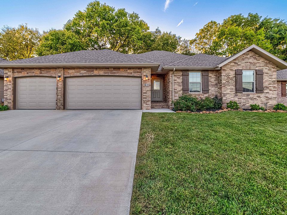 REPUBLIC SCHOOLS and built in 2020?! This one's got it all! This spacious home has 4 bedrooms, 2 bathrooms, and a dreamy 3 car garage (just wait til you see it!). With its traditional curb appeal and well maintained landscaping, you'll fall in love as soon as you pull into the driveway! When you enter through the front door you'll be greeted with a large entryway that leads into the open living, kitchen, and dining spaces. The kitchen features an island, granite counter tops, gas stove, and even a PANTRY! This split bedroom floor plan has 3 bedrooms and a bathroom on one side, and the laundry room and primary suite on the other side. The primary suite faces the backyard and has two walk in closets and a double vanity. The property backs up to a field for ample privacy and seclusion -- and also has a storage shed. This home is located in the highly desired Bent Tree Subdivision which boasts a swimming pool, children's play area, basketball court and tennis court.