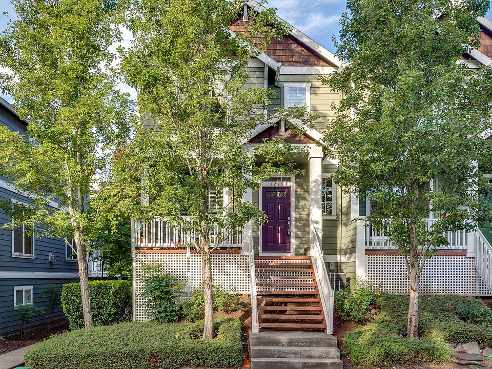 Comfortable Beaverton home near Nike HQ, Costco & MAX station. Framed by manicured shrubbery, boasting an elevated covered front porch & covered rear balcony. Enters to easy open concept floor plan: kitchen, living & dining room. Amenities include a tile surround gas burning fireplace, central island & 1/2 bath. Finished lower level family room & upstairs features a utility closet, 2 master suites w/vaulted ceilings.