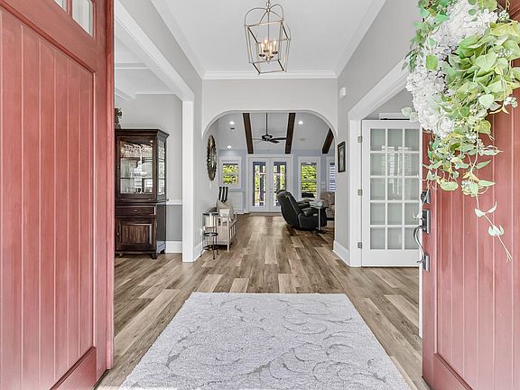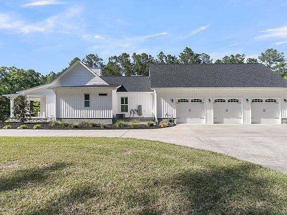This is the unicorn you've been searching for--a truly rare combination of space, privacy, craftsmanship & outdoor living. Built in 2019 on 2.15 acres w/ a fenced backyard, custom in-ground pool, & professional landscaping, this one-story custom home offers over 3,100 square feet, 4 bedrooms, 2 full & 2 half baths, a 3-car garage, dedicated office, formal dining room, gourmet kitchen, large laundry room, & an upstairs FROG perfect for guests or a media room. The open floor plan is designed for both everyday comfort & entertaining, featuring 15 ' cathedral ceilings w/ exposed beams in the family room, kitchen and primary bedroom, crown molding, 8'' baseboards, & driftwood LVP flooring throughout. Plantation shutters cover every window for a clean, finished look.The spacious kitchen includes stainless steel appliances, custom cabinetry w/ roll-out shelves, under-cabinet lighting, & a walk-in pantry. The living room features a gas fireplace & flows into a casual dining space, while a second fireplace warms the screened porch overlooking the pool. A 100-foot concrete driveway welcomes you home. Enjoy added peace of mind w/ a GENERAC whole-home generator & two Rinnai tankless water heaters. Community roads are scheduled to be resurfaced 2025. Located near all that Nexton/Cane Bay has to offer including shops, restaurants, & grocery stores with convenient access to Volvo & Lake Moultrie in just 15 minutes, Boeing, Charleston International Airport, & Downtown Charleston in about 30 minutes, & the beach in approximately 45. This is a rare opportunity to own a meticulously maintained, move-in ready home where quality construction & everyday luxury meet. FEATURES - WHOLE HOME FEATURES: - Raised slab construction - Custom built home - 2.15 acre lot cleared with border of tree line - 100 foot concrete driveway - 4.5" White plantation shutters throughout home - Vertical white vinyl siding - Metal roof accent on front of home, and on master bedroom #1 bay window - Ceiling fans in every room - Ceiling fans in garage and back porch - Two fireplaces (living room and back porch) - 9' ceilings - Cathedral ceilings with beams in open concept and master bedroom #1 - Crown molding throughout most of house - LVP Flooring throughout -- Driftwood - 8" base boards - Every room custom painted - Two Rinnai tankless water heaters (one each side of home) - GENERAC whole home generator - 500 gallon propane tank buried in yard - Oversized well pump house with hinged roof - Culligan water softener system with sand filter - Irrigation system - Custom landscaping - Two HVAC units/systems - dual heating zones - Dimmers on all lighting FRONT PORCH: - Coach lights and LED recessed lighting (timer included) - 8' wrap-around front porch with 2 swings - Stacked stone on base of home LIVING ROOM FEATURES: - Cathedral ceiling with beams - Surround sound speakers - Gas log fireplace - Stacked stone facade on fireplace - Floating mantle - Built in cabinets with bookshelves KITCHEN FEATURES: - Quartz countertops - 9' X 55" island with raised breakfast bar - 18" deep cabinet storage under breakfast bar - JennAir kitchen suite and Kitchenaid dishwasher - Custom cabinets from Jilco, incl. pull out drawers, all soft-close, pull out trash, pull out spice rack, pull out cutting board organizer - Double oven (JennAir) - 42" built in refrigerator (JennAir) - Large walk-in pantry with wood shelving - Seeded glass pendants with dimmer - Under cabinet lighting BUTLER'S PANTRY: - Quartz countertop - Butler's panty with lower and upper cabinets, and drawers - Under cabinet lighting POWDER ROOM FEATURES: - Corian countertop - Mother of Pearl hand-made oval sink with hammered silver border - Waterfall faucet - Floating shelves - Under sink cabinet for storage DINING ROOM FEATURES: - Private dining room - Coffered ceiling - Chair rail - $3,000 oyster shell chandelier with dimmer HOME OFFICE FEATURES: - Home office with glass French doors - Full wall closet with wood shelving and barn doors MASTER BEDROOM #1: - Master bedroom #1 with large bay window - Cathedral ceiling with beams - Large walk-in master closet - Barn door to master bath MASTER BEDROOM #1 FULL BATH: - Quartz countertop - Master bath with extra large glass shower and oval soaker tub - Crystal chandelier over soaker tub - Separate water closet MASTER BEDROOM #1 CLOSET 2: - Second master closet with custom shelving for shoes, purses, etc. - Crystal chandelier - Jewelry /and all purpose cabinet with lighted vanity mirror MASTER BEDROOM #2: - Master bedroom #2 with walk-in closet MASTER BEDROOM #2 FULL BATH: - Quartz countertop - Ceramic tile flooring - Jack & Jill bath with large glass shower - Linen closet - Separate water closet BEDROOM #3: - Fits queen size bed, dresser and nightstand - Connects to Jack & Jill bath - Guest closet BEDROOM #4: - Large closet for clothing or storage LINEN CLOSET: - Very large linen closet with ample storage ADDITIONAL CLOSET: - Broom, mop, vacuum, extra space for anything BONUS ROOM 2ND LEVEL (FROG): - Bonus room above garage - Low pile carpet with premier pad - Dual Ceiling fans - Half bathroom with Quartz countertop - Surround sound - 2 attic access doors GARAGE: - 3-car Oversized garage - 4 exterior coach lights (timer switch included) - Three 9' doors with decorative windows and hardware - Two ceiling fans - Access door to patio - Industrial lighting REAR PORCH: - Large screened in rear porch with stone fireplace - Audio speakers - Two ceiling fans - Gas and electric stub outs for outdoor kitchen SWIMMING POOL: - 14 X 30' in ground swimming pool with steps and railing - Pentair heating and chilling unit for pool - Autostar safety automatic cover - Salt water system - LED lighting - Large patio with cool decking - Custom landscaping incl. 3 Palmettos - Aluminum fencing around pool area with 2 locking access gates LAUNDRY ROOM: - Large laundry room - Laundry cabinets (upper and lower) with drawers