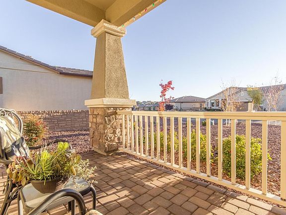 Beautiful home in Lakeside at Prescott Lakes! Cozy up to the beautiful stone fireplace & enjoy views from the wall of windows. Upgraded kitchen w/ white maple cabinets, pull out shelves, Bosh oven, Polare Blue granite counters, cast iron self-rimming sink, & custom lighting. Upgraded tile, recessed lighting, storage, 2 Faux blinds, & extra custom outlets are throughout. Entertain guests in spacious dining room w/ added sq. ft. Spacious master suite w/ walk-in closet, garden tub, extra medicine cabinet, & much more! Front & rear landscaping w/ 19'x25' paver patio, artificial turf, pergola, & drip system. Perfect for a BBQ! Oversized garage w/ overhead storage racks & additional cabinets. Spacious laundry room & 120v duplex receptacle. Enjoy Granite Mountain views from this amazing home!