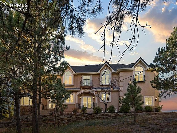 Dramatically perched high above the beautiful city of Monument CO this legacy estate offers miles of world class views as far as the eye can see. The property's impressive scale and volume are on full display from the moment you enter the home. Meticulously maintained and artistically designed not a detail was missed while designing this elegant mountain contemporary compound. Enjoy the contrasting black and white design throughout with flooding natural light engulfing every room. This stunning home features open concept living with a gourmet 5 star kitchen including top-of-the-line appliances, a spacious living room and custom French 7in plank Oak hardwood floors throughout. Rich in amenities, this one of a kind home boasts over 2000sqft of outdoor deck space, a walk out basement, rec room, and a wet bar perfect for entertaining year around. With 2.52 conveniently located acres high above the Bent Tree III Neighborhood, this property truly offers it all. Schedule a tour while you can!
