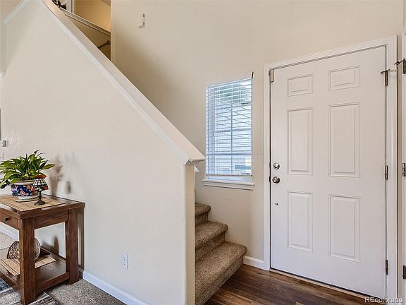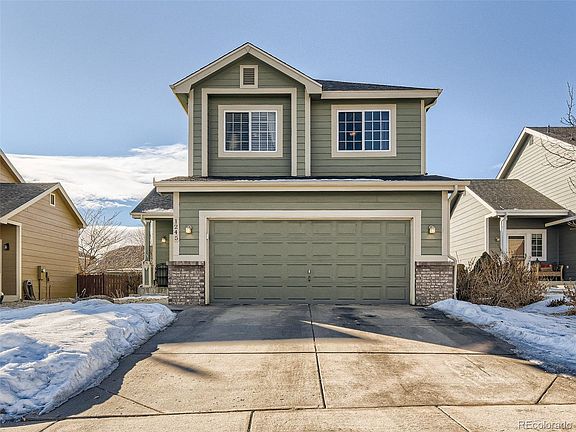 This charming 2-story in Registry Ridge features 3 bedrooms, 2.5 baths, living room, kitchen w/breakfast nook, laundry, 2 car garage and unfinished basement. Pride of ownership shines throughout. Beautiful upgrades and finishes including an updated kitchen w/slab quartz counters, glass tile backsplash, and stainless steel appliances (refrigerator negotiable) and roll out drawers; custom paint gives this home a wonderful spark of color, ceiling fans in the all three bedrooms. Finish the basement for even more living space or leave as is for storage. The backyard is great for entertaining, garden in the many beds or relax on the trex deck. Ample storage in the shed (with rainwater collection system). You will not be disappointed. Neighborhood amenities include a swimming pool, clubhouse with reservable event space, playground, tennis court, basketball court and walking trails. Great location only 8 miles from Old Town and 10 miles from 1-25. Close to dining, shopping, entertainment and other amenities. Don't miss your opportunity. Welcome Home!