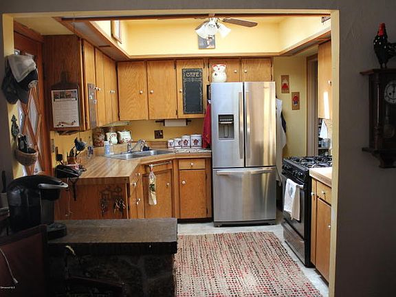This cozy 3 bedroom house has a large living room with fireplace w/insert, kitchen with newer stainless steel appliances, dining room, and 3 bedrooms upstairs, with one set up as an office with murphy bed. Downstairs is the large family room with your own tree, bar, sauna, laundry room and lots of storage. Outside you have a big lot, with large fenced yard in front , 2 car detached garage/ shop and RV parking. You will enjoy sitting on the covered back patio and seeing the large fenced rear yard and garden area.