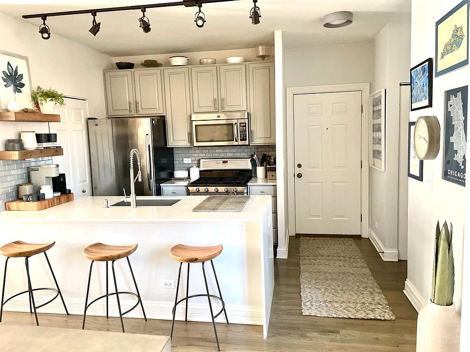 Top floor walk up (4th floor) condo in Lakeview with 11' ceilings and bay windows with tons of natural light. Condo has hardwood floors, exposed brick, recently updated kitchen/bathroom with quartz countertops, and in-unit laundry. . Amazing 360 skyline views seen from common rooftop deck. Short walk to Diversey Brown Line station and bus stops. Right near the condo, you will find multiple coffee shops and restaurants. Parking: There is parking, however it is compact and takes some maneuvering. I would like to mention there is FREE and ample parking on George st. that does not require a permit. Inquire to fill out lease application. Unit will be leased to individuals based on application order and application review. LOOKING March 1st lease/move in! Minimum one year lease required with security deposit equal to one month's rent. Tenant responsible for gas and electricity. Owner covers water and trash. Small pets allowed. No smoking permitted.