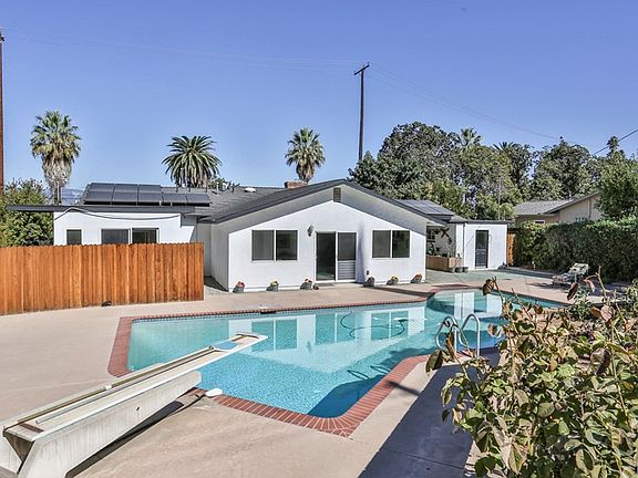 This beautiful pool home located in prime South Redlands features 3 bedrooms and 2.5 bathrooms within its spacious 2016 sqft with wood and tile flooring throughout. Updated kitchen with stainless steel appliances and granite counter-tops. Adjoining dining area is highlighted by an indoor brick charcoal grill. Third bedroom has been converted to an office and opens into the large sun-room, which provides an abundance of natural light and a great entertainment space. The large lot features drought tolerant landscaping along with multiple orange (2 Valencia, 2 Naval), a Meyer lemon, a Grapefruit and an Avocado tree. Electricity is provided by 16 solar panels that are FULLY OWNED.