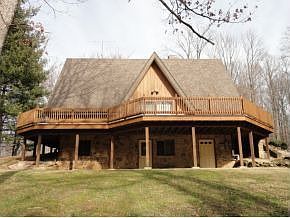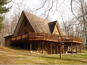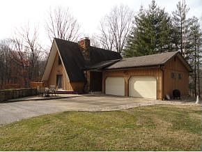 Check out this beautiful 2776 sq. ft. A frame style home nestled back in 34.22 acres of woods. This home offers on the main floor a Living room with a large stone fireplace, an open concept with Dining room and Kitchen area plus an entry that has sl ate flooring. The master bedroom and master bath is also on the main floor with an additional half bath. There are 3 entry doors going out to the approximately 800 sq. ft. of decking that wraps around 3 sides of the home. The upper level offers a bedroom, an office/study and an arched and open walkway across the living room. Downstairs is a large family room with a stone fireplace, a bathroom, a 3rd bedroom, a large utility/laundry room and 2 entry doors that extend out to the 15x38 porch. The home has a 24x24 attached 2 car garage plus a 22x26 3 sided outbuilding. This property has lots of wildlife and a quiet beautiful setting. If you are looking for privacy, seclusion and nature at it bests check out this home conveniently l ocated just off of SR 43 south of Spencer and just west of Bloomington approximately 11 miles to 37.
