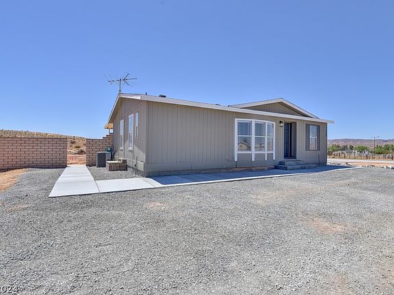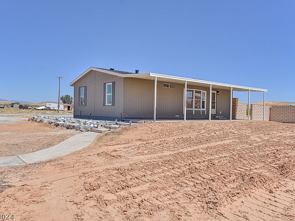 Newly updated 2 bedroom, 2 bath with office/den on 2.30 graded acres on a corner lot. All new waterproof plank flooring throughout, new kitchen cabinets with slow close drawers and doors, tile backsplash, quartz countertops, and bathroom vanities. New water softener, Samsung stove, dishwasher and micro-hood. A 10'x40' covered back patio has great views of the endless riding opportunities from the neighboring BLM property and close to the Clark County Fairgrounds, Logandale Trails and the mesa. Plenty of room for horses or a garage!