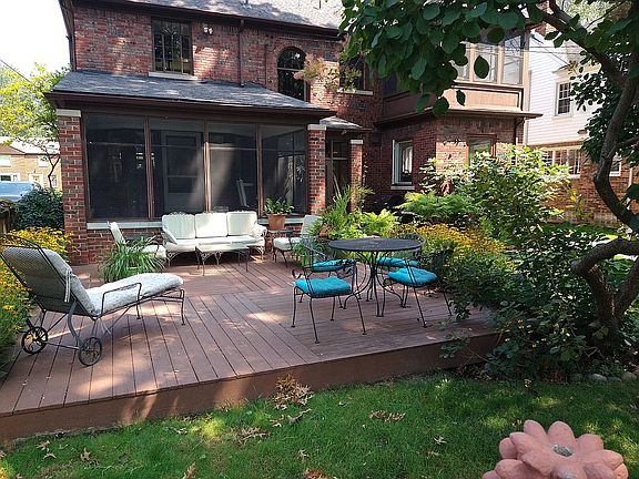 Offering a fresh, well preserved 1928 two story English Tudor with three large bedrooms, including a new kitchen and a new full bath, loads of natural light and an award winning landscape. As you approach your new home, you will notice the unique “clinker” brickwork with limestone accents. The beautifully maintained Fenestra Casement windows let in a ton of natural light. Custom interior storms keep you warm in the winter. The stucco walls and coved ceilings are accented with plaster braided archways and beautiful medallions. The huge natural fireplace can be converted back to natural gas if you so wish. The woodwork throughout the home, doors and mouldings are lovely. The kitchen has brand new Anderson casement windows. The new lower cupboards include soft close drawers and doors and the upper cupboards are tall and lovely. There are also a bank of leaded glass cupboards that give you a ton of storage. You will enjoy cooking on the new suite of GE Adora slate appliances including the French door refrigerator with ice and water, a convection gas stove with a griddle, and a dishwasher. The Brazilian granite countertops are extra deep to give you room to work and the undermount granite sink is stunning. The Pergo Timbercraft waterproof flooring completes the look. The master bedroom is the entire depth of the home with two closets, one being cedar. Plenty of room for a king size bed plus dressers. The two other bedrooms are large and give you options for your bed size and placement. The back bedroom also has a sleeping porch with windows all around and a beadboard ceiling. It has the feeling of being in a treehouse. The new upstairs bath boasts a stand alone slipper soaking tub and a glassed in shower with a Delta fixture offering many showering options including a large rain shower head. The radiant floor heat with a programmable thermostat will keep your feet, as well as the room, warm. A unique trough style granite sink with two waterfall faucets sits upon a Brazilian granite countertop with a large vanity including many drawers for a lot of storage. Gorgeous imported marble tile, high end jet commode, wall mounted Smart TV and a brand new Anderson window makes this bath complete. In the basement you will find unique schoolhouse block walls, glass block windows, a lavatory / half bath, a closet with bead board doors, and a pantry/fruit cellar. A cement faux fireplace is on the partially finished side of the basement. Newer 40 gallon hot water tank and the Weil McClain boiler is well maintained. The house is also equipped with quiet radiators, some having custom radiator covers, all with humidifier trays. A quintessential Elm tree welcomes you home, along with the mature, beautifully kept, twice over Beautification Award winning front landscape. The whimsical Anna Belle Hydrangeas sit behind well trimmed boxwoods. In the backyard there is a large Oak tree to keep you cool in the summer while you lounge on your deck outside the screened in porch. In the evening gather around the fire pit, on handmade cement “stones” for some family fun. The Smoke tree, Tiger Eye Sumac, Oak Leaf Hydrangea and Japanese Tree Peony make the backyard gardens unique along with many other bushes and perennials.