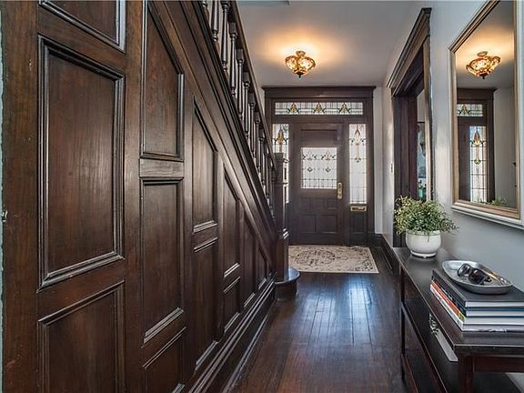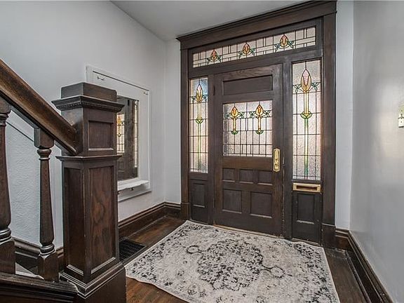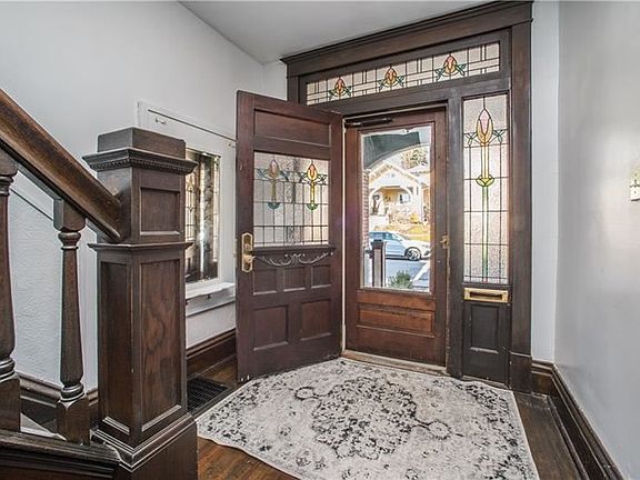 Charm and character is what you'll find at this Dormont home on Wisconsin Ave. This home sits on the low side of the level street so very few steps until you're on the large front porch, enter the home through the front door and notice the beautiful stained glass in the entry way. The entry way has the well-preserved original woodwork and floors, pocket doors lead to the front room currently being used as a dining room, a large picture window lets lots of light in, beautiful mantel and decorative fireplace and high ceilings add to the charm. The living room also has lots of light with a beautiful fireplace/mantel and built ins that have been restored. The kitchen has been updated with newer cabinets, granite countertops and stainless steel appliances, the door in the kitchen leads to an enclosed back porch. Upstairs you'll find 2 BR, bonus room currently used as an office, updated full bath and the full attic. Two off street parking spots are added bonus.