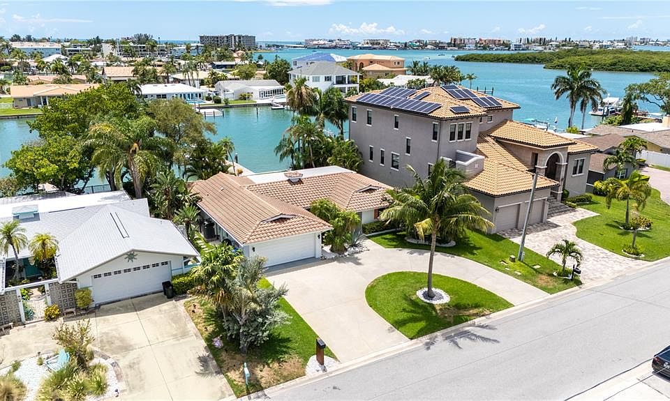 Welcome to your waterfront oasis at the Isle of Capri! This impeccably renovated home boasts luxurious features and amenities throughout. Updates include- 2022 Pool, 2022 Kitchen and Bathrooms, 2022 impact windows (except back with impact tinting) Updated landscaping with lighting, 2019 Trane stage AC with redone duct work and Trane mini split for Garage. Step inside to discover a beautifully designed open-split floor plan that immediately showcases the stunning Sekas pool hot tub and scenic waterfront views. The floor's warm grey tones, complemented by transitional paint accents, create an awe-inspiring atmosphere. Take note of the elegant white shaker kitchen with quartz finishes and top-of-the-line appliances, a dream for any cooking enthusiast or entertainer in this expansive layout. The master bedroom suite features water views and power blinds with large windows and is conveniently located adjacent to a spacious great room overlooking the pool, ideal for bar and pool table entertainment. The two additional bedrooms are situated on the opposite side of the home, ensuring privacy for both family and out-of-town guests. Conveniently within walking distance to the beach, this turnkey home has undergone a complete remodel. Transferrable flood insurance. Schedule an appointment to view this property today.