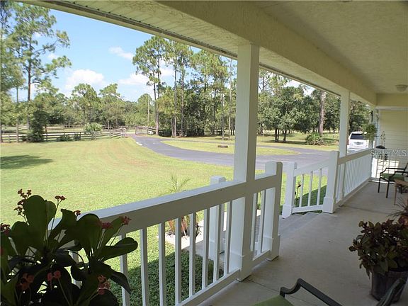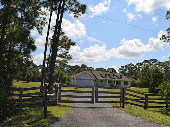 COUNTRY HILLS ESTATES- FIVE Acres of country charm. Custom 2005 CBS & Hardy board- Energy Efficient! 3 Bd/ 2.5 Ba/ 23x28 deep garage. Stone fireplace, plant shelf. Country kitchen w/ Bead board cabinets and granite counters, bkfast bar. French doors lead to 14x34 screened Lanai which offers sensational sunrises and grazing deer in the evening. Vaulted and tray ceilings. Hurricane shutters. Extra paved parking, fenced, electric gate. COUNTRY ELEGANCE! (Note: Adajcent 4.73 acre property also for sale, MLS #OK0213158)