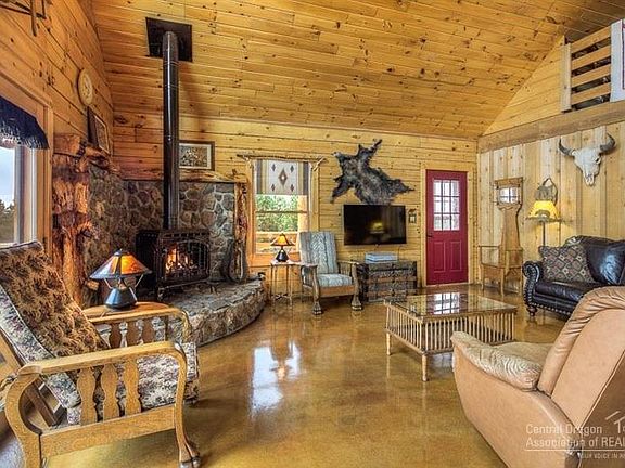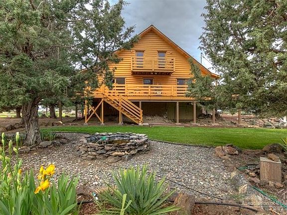 Beautiful Custom Built Log Home with sweeping views of the Cascade Mountains & world famous Smith Rock. Located in Crooked River Ranch with eight stall barn (tack room & wash station), corrals, & round pen - this is a move-in ready horse property. Home features wrap-around deck & porch, balcony with views of Smith Rock off upstairs bedrooms. Inside is an open airy floor plan with vaulted ceiling, gorgeous stained concrete floors with radiant heat, custom pine cabinets & master on main floor.
