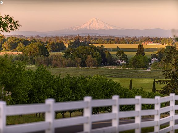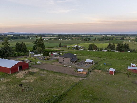 Tucked into the rolling hills of Oregon’s Wine Country, this exceptional 10-acre estate blends classic Northwest character with modern comfort. Inside, enjoy newly installed hardwood floors, an open-concept layout, and expansive windows framing sweeping views. The gourmet kitchen features granite counters, custom cabinetry, and a walk-in pantry, opening to a cozy living area with a wood-burning stove. Upstairs, the spacious primary suite offers a spa-like ensuite, while three additional bedrooms, a bonus room, and loft provide flexibility. Step outside to a full outdoor kitchen with a wood-fired pizza oven, cherry trees, raised garden beds, chicken coop & RV hookup. The barn includes a workshop with 3 - 240 outlets and indoor riding arena. Recent updates include a septic system, and gutters. Just minutes from McMinnville and world-class wineries, this rare property offers refined country living at its best.
