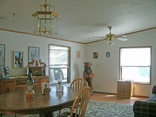 This three bedroom two bathroom double wide home is located in a top west side park. The kitchen and family room is large with lots of light from the two big windows. The house has vaulted ceilings and new carpets in some of the rooms. The living room is very spacious and has new carpeting. There is a deck in the large backyard. The home also features a large work room behind the carpet. The roof is about 2 1/2 years old, and the siding looks to be in good condition. The master bathroom has two porcelain sinks.Pets Rv Rec Center