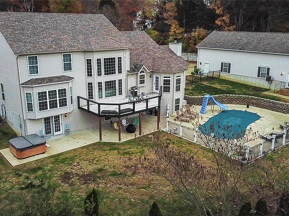 Fantastic custom built 1.5 story home with ENORMOUS detached garage you could live in! Garage boasts 14 ft. doors, HVAC system, bathroom, 220 amp, + loft storage! Inground pool is already here when the warm weather returns, but until then you have a superb media room downstairs with stadium seating for 20! You can see by the photos there is beautiful uplighting installed as well as inground sprinklers, central vac & alarm system! Refrigerator, Washer & Dryer Remain.