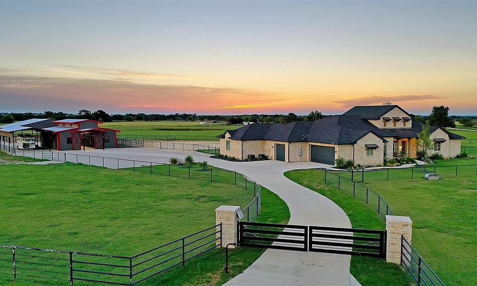 Incredible 12 acre, ag exempt, gated equestrian estate complete with large pond, covered arena, RV parking garage, insulated barn with Dutch doors, 4 (12x12) stalls with 20' run off each stall & auto water, feeders and each stall has turn out gate to pasture; tack room, wash rack with hot & cold water, mats, 12x28 workshop has 220 wiring, 12' isle, pipe top and no climb fencing. Like new, custom built Texas Hill Country style Austin stone home features open floor plan with attention to detail obvious in every room and includes a multitude of upscale amenities including beautiful wood floors running throughout most of the home. Family room features towering ceilings with wood beams, floor to ceiling stone fireplace and opens onto chef's dream kitchen. Kitchen includes an abundance of custom cabinetry, granite counter tops, wood beam ceiling, commercial style appliances including built in refrigerator, range with gas cooktop and double convection oven, dishwasher, exhaust, microwave, oversized island/breakfast bar, farmer style sink, large pantry and opens onto butler pantry and dining area. Butler's pantry includes custom cabinetry, beverage chiller and wine rack. Second living area/media/game room, 4 bedrooms with ensuite baths, expansive utility room complete with custom doggy shower. Master bedroom features tiered ceiling, sitting area, private office area and banks of windows providing stunning pastoral views. Master bath is complete with his and her vanities with custom cabinetry, soaking tub, spa style shower and walk in closet. Covered patio overlooks spectacular ground and features summer kitchen complete with stone fireplace. This is a horseman's paradise - don't miss it! 2021-03-10