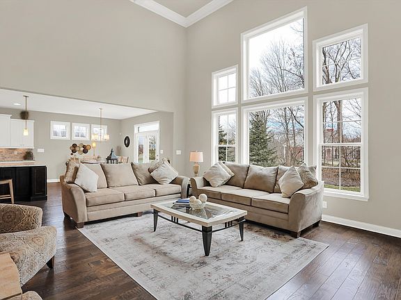Beautiful and well-maintained home in Thorpe Creek. Unique opportunity to buy a Paxton floor plan. 2 story great room with coffered ceiling, Gourmet kitchen w/ huge island, along with butler's pantry and walk-in pantry. Step down one level to a 19x19 family room with great natural light pouring in. Step down again to the finished basement with wet bar, full bath and a hobby room. Upstairs, 4 bedrooms and 3 full bathrooms await. The primary suite is amazing with tray ceiling, sitting room, dual walk-in closets and dual vanities. The 2nd bedroom has attached private bath. Bedrooms 3 and 4 share a jack and jill bathroom. Dual zone hvac, irrigation system, Dog Watch invisible fence, 3 car garage, large mudroom, and office on main floor. NO homes behind and this home sits next to an open space. Steps away from the amenity center- pool, clubhouse, park and basketball court. 3rd garage bay is 11'4" x 21'5"