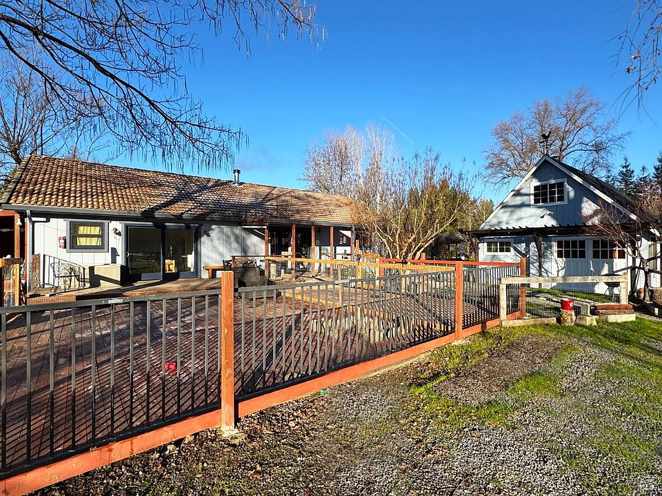 This extraordinary property offers a modern lifestyle with a stunning custom-built main home and a charming guest house perfect for multi-generational living, hosting, or rental income. The main home showcases impeccable craftsmanship, with large Proline Milgard UV-protected windows in every room, bringing in natural light while preserving energy efficiency. High-end finishes, oak plank flooring, and a Blaze King wood stove create a warm and inviting atmosphere. The kitchen is equipped with top-of-the-line appliances, making it a dream for culinary enthusiasts. Additional features include a walk-in closet, excellent insulation, and quality touches throughout. The property is powered by a solar system that supports both homes. A domestic well and AG water rights with a year-round pond, 97 Redwood trees and 8 varieties of fruit trees enhance the serene environment. Horse arena, stalls, and ample flat space, while the chicken barn adds to its country charm. The guest house offers versatility with a bonus room and a roof deck boasting spectacular views. With 5 carports, a gated drive, and proximity to recreational treasures like the Eel River and Lake Pillsbury, this property is perfect!
