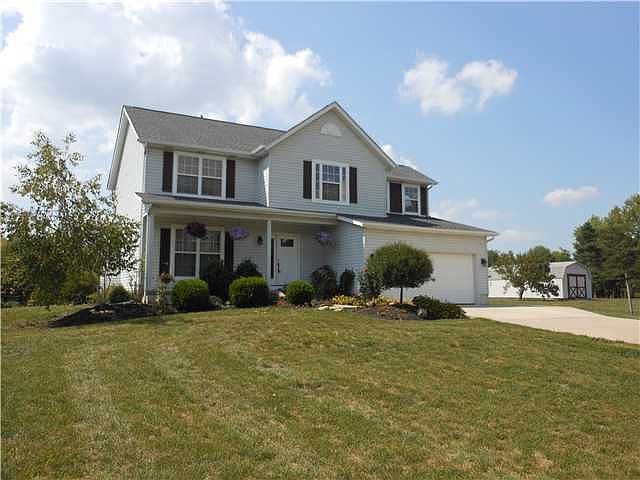 WOW! What a beautiful setting on 5 ac & nestled down a private lane. Step into your foyer boasting hdwd flrs cntinuing into your formal living rm & dining rm. The fabulous kitchen is equipped w/LOTS of counter & cabinet space along w/hdwd flrs. Family rm is accented w/a brick fireplace & doors to your concrete patio! The master suite offers a private bath, dbl sinks, soaking tub & walk-in closet. Basement is partially finished! Enjoy the convenience of laundry on the 1st flr!
