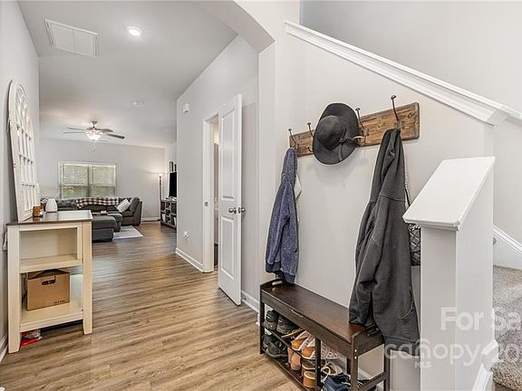 Click the Virtual Tour link to view the 3D walkthrough. Situated on over half an acre with a view of incredible trees, this like-new, two story home is ready for new owners! Close to 485 for easy access to all that Charlotte has to offer. High ceilings and tons of natural light make this home feel bright and airy. Wood laminate flooring throughout the main level is a breeze to maintain while the upstairs bedrooms have soft carpeting underfoot. The gorgeous island kitchen sparkles with granite countertops, subway tile backsplash, stainless steel appliances, and white cabinetry. A primary suite of your dreams awaits you- boasting a vaulted ceiling, walk-in closet, dual vanity sinks, and a walk-in shower! Huge backyard with a patio is perfect for entertaining guests, relaxing or dining outdoors. Don't miss out on this rare find in a great location!