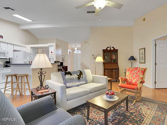 Nestled on a quiet cul-de-sac in the sought-after Hunters Ridge neighborhood in South Kernan, this beautiful home combines peaceful living with unbeatable convenience. Just minutes from Jacksonville's beaches, premier shopping, and downtown, plus top-rated schools nearby, you'll enjoy easy access to everything the city has to offer. Step inside, the open-concept kitchen and living room featuring soaring ceilings and classic hardwood floors, creating a warm and inviting space perfect for gatherings. This home features a thoughtfully designed two-room suite with a full bathroom, which provides flexible options for guests, multi-generational living, or a private office.