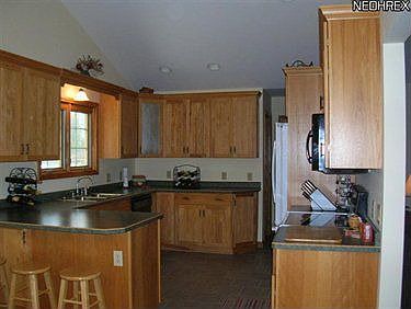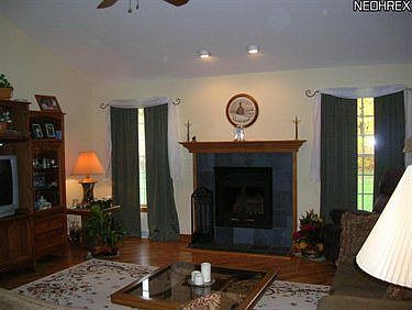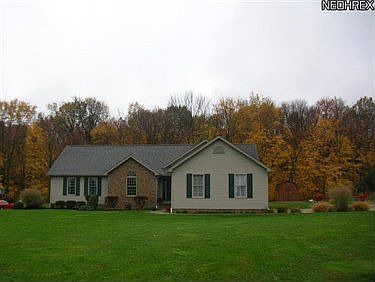 This ranch style home shows with 3 bedrooms and 2 full baths Built in 2000 is like new. Italian Ceramic tile foyer that leads thru to the Kitchen. Beautiful Hickory cabinets, breakfast bar, appliances,spacious dining area. 1st floor Laundry Room. Great Room with wood floors, wood burning fireplace/Heatilator and natural light. Master Bedroom has a large Master Bath with separate vanity room, and large walk in closet. Other 2 Bedrooms are large too with double wide closets and they share the main bath. Spacious double car garage with attic access. Concrete patio leading from the kitchen/dining area. Well groomed acreage extends approx 30 feet into the woods. Amish built outbuilding. Security system on the home and outbuilding. Western Reserve Schools.