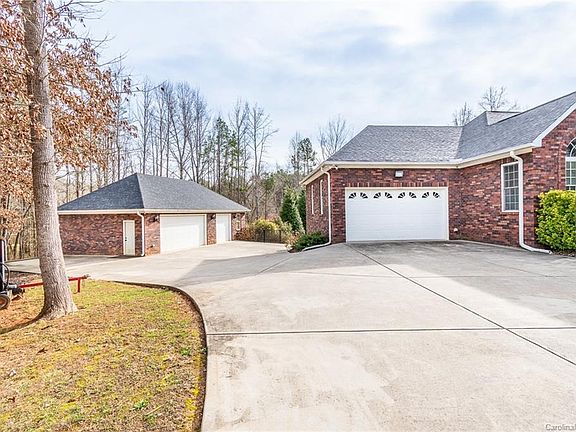 Stunning estate property with 4.1 wooded private acres. Custom full brick ranch home with finished basement. Gated entrance, 2-car attached garage & 3 car detached garage & golf cart/lawn mower/storage garage in basement. New roof 2019, on demand water heater, lots of storage over garage and central vacuum. Spacious covered porch over looking heated salt water in-ground pool with hot tub with heated & cooled pool house. Pool house has kitchen dining area & full bathroom. Features outdoor brick oven & fireplace. Includes 12 zone irrigation system for yard. Beautiful Koi pond with lots of fish. There are 3 bedrooms on the main level and the finished basement media room can also be used as a 4th bedroom-perfect for guest. The basement level also has a billiard room with a bar, entertainment room, laundry room & bath room. Only 15 minutes to Interstate 85 and 45 min drive to Charlotte Douglas airport.