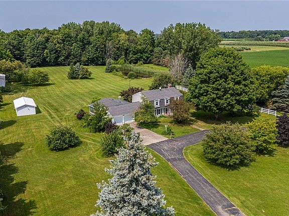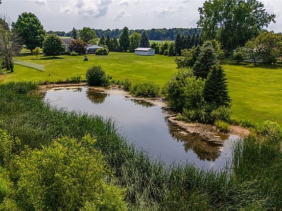 Discover your private oasis off the beaten path! A charming home nestled on over 8 acres boasting a spacious screened-in, 30x35 tiled sunroom w/ hot tub, perfect for relaxation. The home spans 2,199 sq ft offering 3 large bedrooms and 3 full bathrooms, one full bath conveniently located on the 1st floor along with 1st floor laundry. The updated kitchen a chef's dream with cherry cabinets, Jenn-Air built-in stove top w/fryer, 4 burners and 2 grills, stainless steel refrigerator, kitchen sink water purifier, built-in convection oven, built-in microwave and Corian countertops. The home also features an updated furnace, hot water tank and a whole house generator. The cozy fireplaced family room features a blower that keeps the entire 1st floor warm and inviting. The property includes two barns (30x40 & 20x40), both equipped with electricity, one with water hookup. This property is complete with its own pond featuring a flagstone patio. The poured foundation, walk-out basement houses a dehumidifier-controlled wine cellar, perfect for wine enthusiasts. The grounds are a gardener's delight with apple and pear trees, elderberry and raspberry bushes, and grapevines. No delayed negotiations.