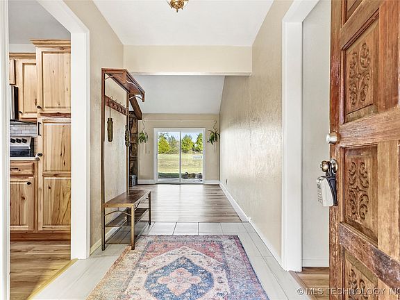 Nestled on an impressive 2.88-acre lot, this rare one-story gem offers a blend of modern comfort and rural tranquility. Step into a beautifully remodeled home featuring custom upgrades throughout, including a stunning kitchen and bathrooms adorned with quartz countertops and all-new appliances. Luxury wood plank vinyl flooring runs seamlessly across the home, complemented by fresh interior and exterior paint for a contemporary and inviting atmosphere. A new roof, hot water tank, and some new windows provide peace of mind, while fiber optic internet ensures you stay connected. The property also boasts a storm cellar for added safety and ample space to add a shop, making it a perfect fit for those seeking versatility. Conveniently located near the Creek Turnpike, this home offers both seclusion and accessibility. Best of all, it qualifies for a Rural Development loan, allowing you to move in with zero money down. Don't miss this exceptional opportunity to own a property that truly has it all!