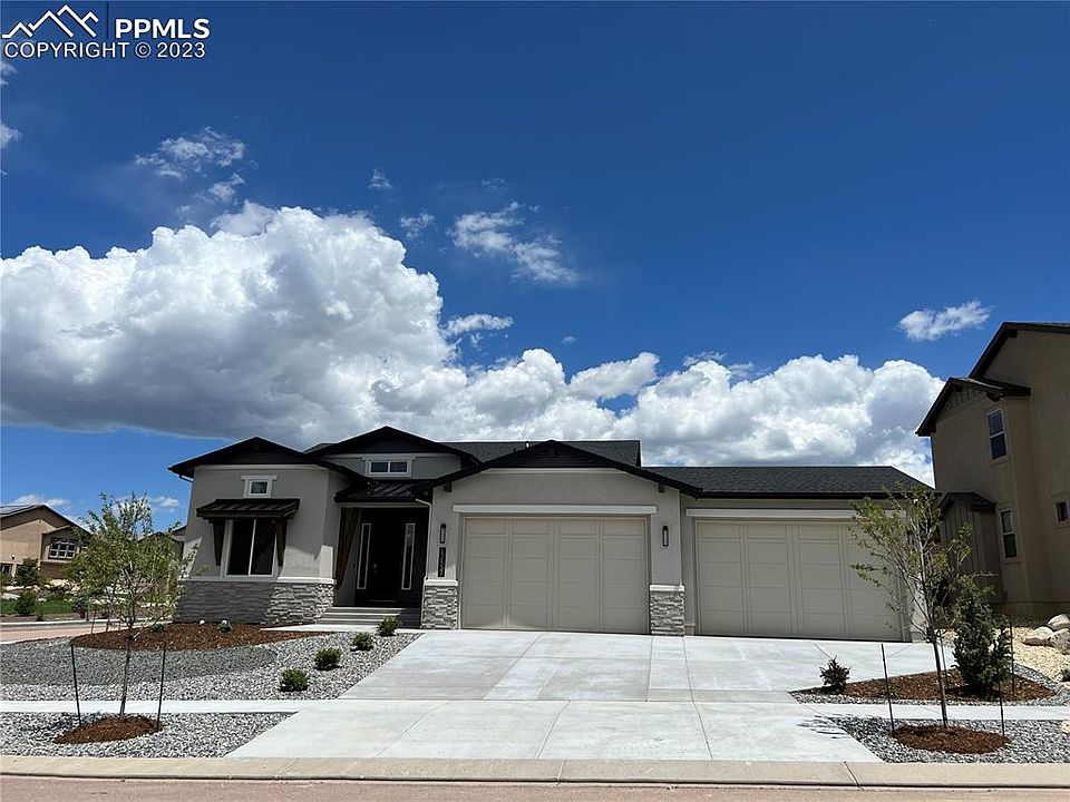 Stunning Ranch Home located on a corner lot in the highly coveted Flying Horse Neighborhood. With peak-a-boo mountain views this semi-custom 5-bedroom 4-bathroom home has it all. Upgrades upgrades upgrades!! As you enter notice the 12-foot-high vaulted ceilings throughout, with upgraded exposed beams in the main living area. Gourmet kitchen with upgraded appliances and leather granite counter tops that opens up to the family room with custom fireplace, stonework and dining area. Spacious primary bedroom with a 5-piece bath that you don't want to miss. Huge walk-in closet that is attached to the laundry room. The basement is fully finished and has 10-foot ceilings with wet bar, huge great room and spacious bedrooms. The 4-car garage boasts 10-foot garage doors with back yard pull through as well as custom flooring, fully finished walls and upgraded electrical. Located by the Flying Horse Golf Club, Rec Center, and miles of walking trails this one is not to be missed. Welcome Home!!!