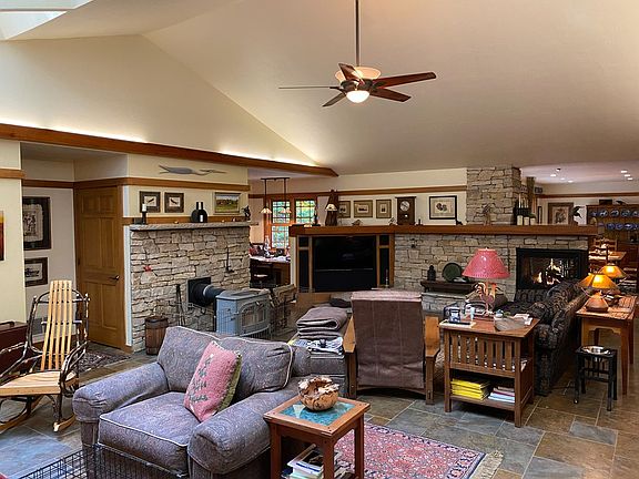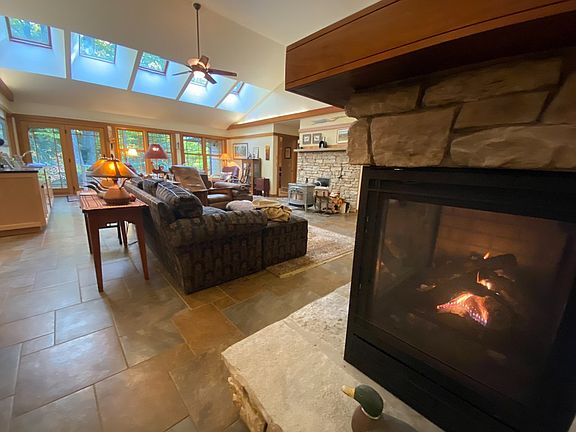 Leaves rustle in the tree canopy while a Loon's cooing is heard from nearby Europe Lake. Such natural tranquility blends harmoniously into the refuge of this 3,481 square foot Arts & Crafts inspired home towards the tip of Door County. The home was built in 1988 using timeless, top-level finishes like granite and hardwood. Vaulted ceilings rise above expansive and cozy living areas. The great room features a triple-sided gas fireplace and an efficient woodstove over hardwood and tiled flooring. A full, unfinished basement affords ample storage and expansion possibilities. In addition to the 3-car attached garage there is a detached 30x40 workshop/garage. Newport State Park and Europe Lake are close by to add to the quiet, natural setting.