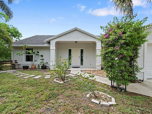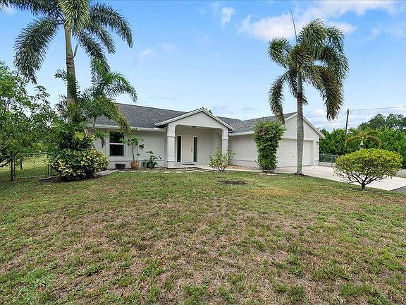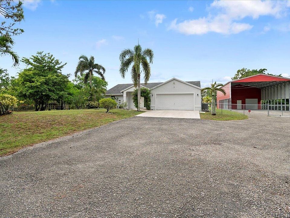 Welcome Home!This stunning 3-bed,2-bath home with a large open-concept living area,situated on a 1.15-acre lot on a paved road.This beautifully maintained property features a newer roof,newer impact windows,and is fully fenced for privacy.The newly renovated kitchen and baths add a modern touch,while large vaulted ceilings throughout the house create an airy and spacious feel.The property includes a large open patio,perfect for grilling,entertaining,and enjoying the South Florida outdoor lifestyle.Enjoy various fruit trees,including mango,avocado,jackfruit,lychee,and tamarind.A standout feature is the 30x50 carport with two enclosed storage areas (10x10 and 10x20),which can be fully enclosed to provide complete coverage for all recreational vehicles.Large enough for 2 RV's or large boat.