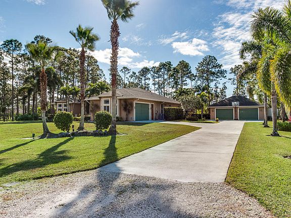 This is the one you've been looking for. Custom built in 2003 by prior owner/builder. CBS, 4 bedroom, 3 bath, 2 car-garage main house + detached 1,050 sq ft extra garage! Travertine floors laid in french pattern + hardwood floors in bedrooms. Split bedroom plan. Kitchen has 42'' maple cabinets w/ glazing, glass accents, under cabinet lighting, granite, double ovens & large pantry. Amazing laundry room + sink w/ versatile built-ins; could be used as a 2nd office or craft room! Crown molding & custom closets! Custom pool w/ huge stacked stone accented outdoor kitchen w/ covered lanai's. This is the perfect entertaining house! Completely sodded & irrigated yard! Front yard decorator landscape lighting. Two deep wells...no rust! Reverse Osmosis drinking water system. You will be wowed!